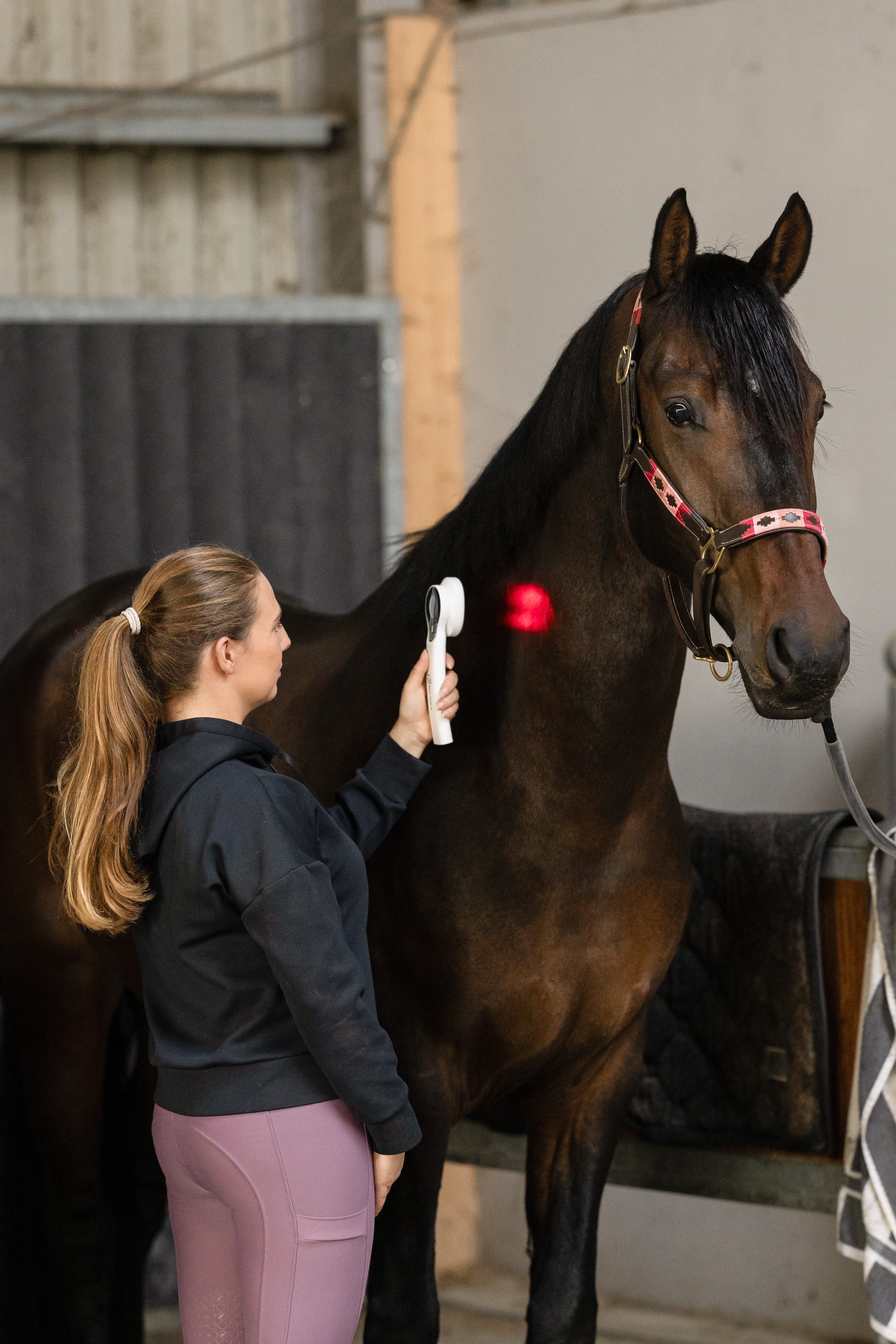 De draadloze bediening en het ergonomische ontwerp maken de hand-laser perfect voor dagelijks gebruik, ook onderweg of in de stal.